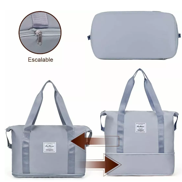 DescripciónBolsa Para Hombro Estilo GymLa bolsa de hombro expandible plegable está hecha de tela Oxford de alta calidad impermeable y resistente al desgarro con una cremallera de metal suave.Pesa solo 0,42 kg, pero su capacidad llega a los 30 litros.Es Seco y húmedo: hay un bolsillo impermeable en la bolsa almacenar ropa húmeda. Puede poner toallas mojadas y artículos de tocador en la bolsa para ayudar a separar lo seco de lo húmedo. Es muy útil llevarlo al gimnasio o nadar.La bolsa para ropa húmeda está diseñada con una cremallera y puede guardar de forma segura su billetera, efectivo o tarjetas sin que esto se moje.Se puede colocar sobre la maleta o en el asa de la maleta, apoyándose firmemente en la maleta, liberando ambas manos y hombros.La bolsa de hombro se puede colocar fácilmente en el estante superior para un vuelo cómodo.Nota: compruebe el color y el tamaño seleccionados, ya que no se pueden cambiar después de confirmar el pago. Contenido del paquete:1 bolsa de equipaje plegable GarantíaSe realiza sólo por defectos de fabrica, el color le llegará de acuerdo al seleccionado, si el color ya no se encuentra disponible será reemplazado aleatoriamente según stock.