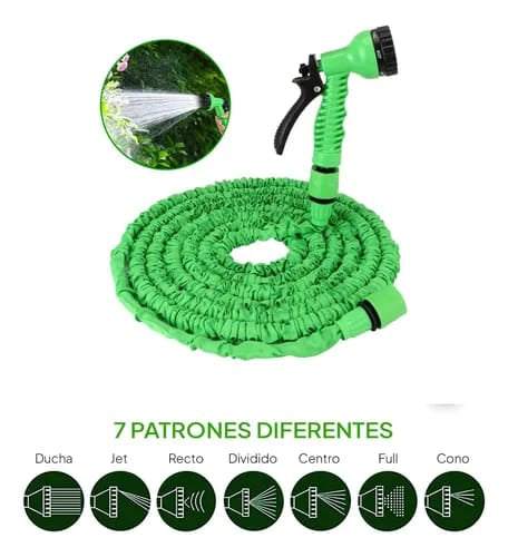 Manguera de Jardín Retráctil✨ Características Principales:- Manguera de jardín retráctil extendible de 15m\50ft para agua.- Diseñada para ser fácil y ligera de transportar.- Ofrece 7 modos de disparo ajustables para diversas necesidades.- Materiales de alta resistencia.Descripción DetalladaLa manguera de jardín retráctil es ideal para uso diario. Con una longitud de 15m o 50ft, facilita el manejo de agua. Su diseño compacto la hace portátil y fácil de transportar. Incluye 7 modos de disparo, adaptándose a tus necesidades específicas. Perfecta para jardinería y otras aplicaciones que requieren flexibilidad y comodidad. Su boquilla de alta presión ofrece un chorro a distancia bastante utíl para su utilización.EspecificacionesLongitud: 15m / 50ft.Modos de disparo: 7.Fácil y ligera de transportar.Disponible en colores verde y azul.rosiador multiusos incluido.idela para el riego eficiente de jardines.Esta manguera cumple con las necesidades básicas de jardinería, sin agregar complicaciones.