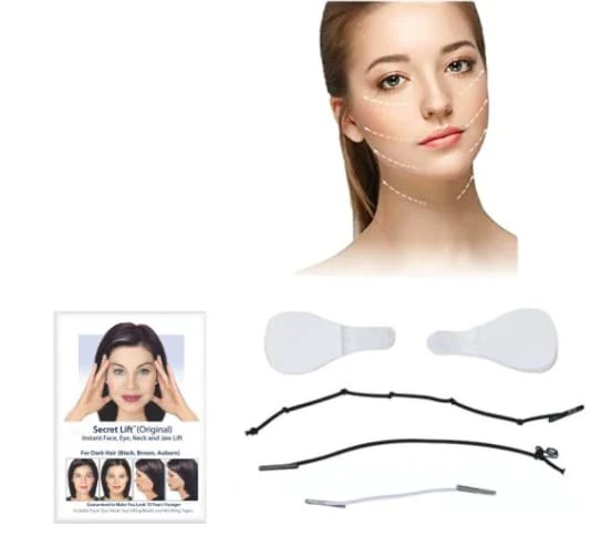 Recambio para juego de cara, cuello y ojo ascensor instantánea por cosmesearch, Inc.Grado médico y transparenteRecambio para secreto Lift (original) Descripción:Características:1. Se verá años más joven al instante y se sentirá genial con Este estiramiento facial.2. Este estiramiento facial quitará años de su apariencia en solo unos minutos. Levantará la flacidez de la piel, eliminará las arrugas de su cara, mandíbula del cuello y área de los ojos.3. Este estiramiento facial es altamente efectivo, fácil de usar, invisible.Simplemente pegue un extremo de la cinta en la piel de nuestra cara, luego tire hacia atrás la piel hasta 3 a 4 pulgadas y empuje hacia abajo, y el resultado entra en efecto inmediatamente.4. Cintas transparentes de grado médico, transpirables yAntialérgico.5. Se puede utilizar en ocasiones especiales, como bodas, reuniones, modelado, toma de fotos, viajes, etc.Especificaciones:Grupos adecuados: para mujeres El paquete incluye: 1 x Paquete de pegatinas de elevación